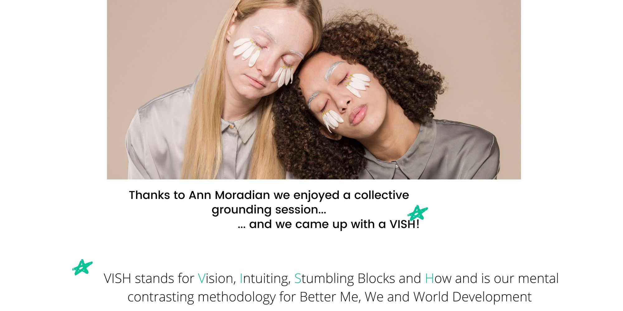 And of course, we will conclude by taking you through our mental contrasting VISH-Ring method, co-creating the tools and strategies to make y/our VISHes come true.